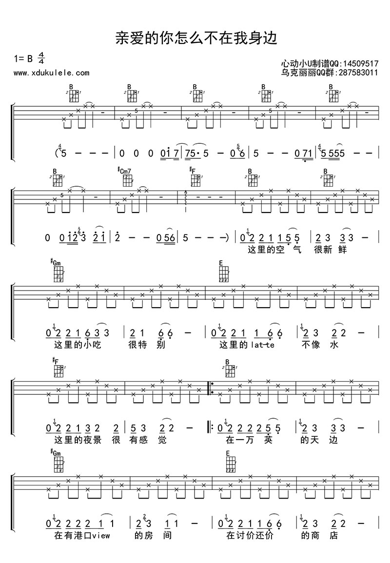 尤克里里亲爱的你怎么不在我身边_尤克里里谱_江美琪