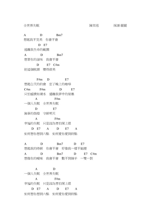《全世界都失眠尤克里里弹唱谱》尤克里里谱,共有1张高清图谱,免翻页排版设计。...