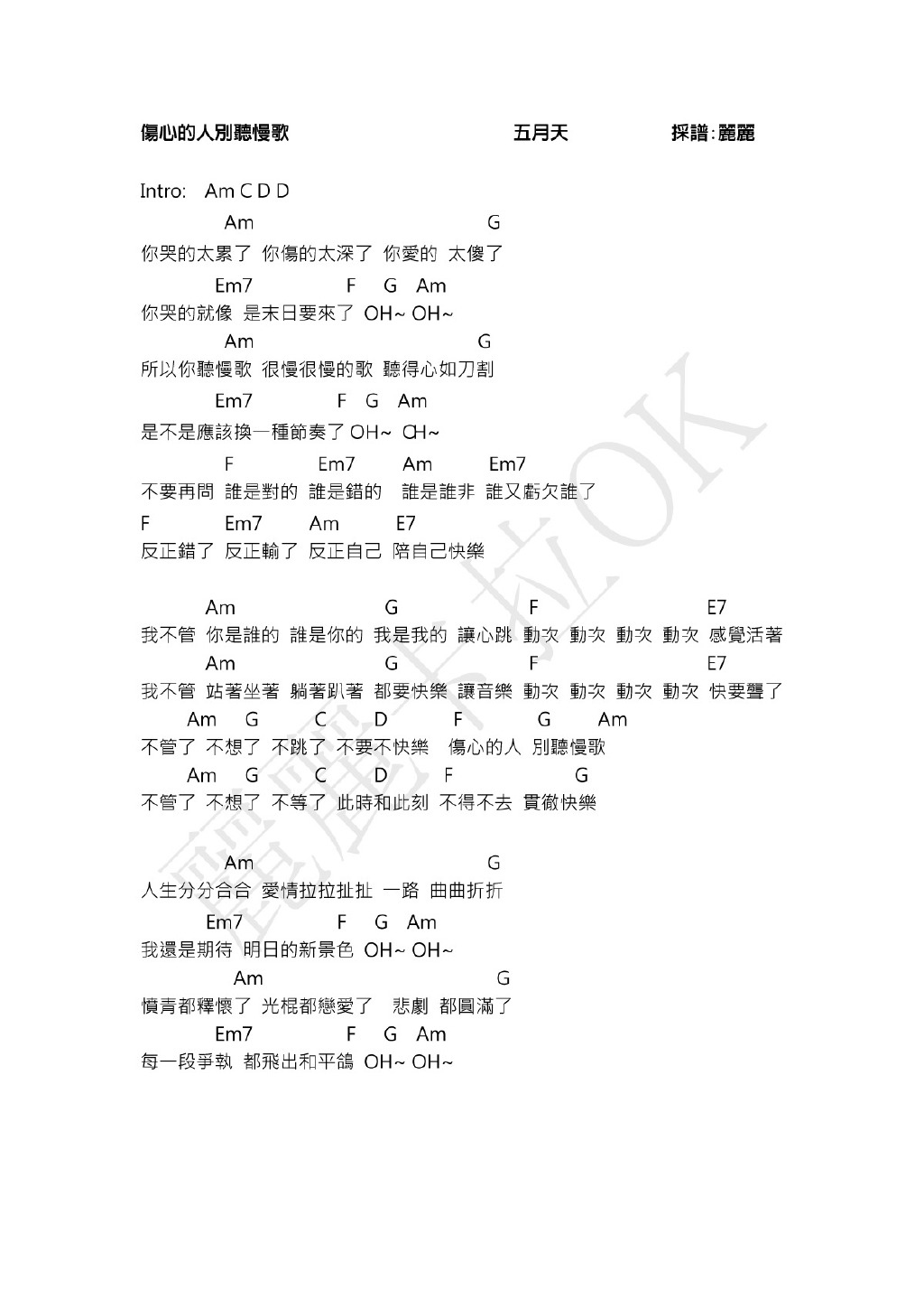 尤克里里伤心的人别听慢歌 尤克里里ukulele弹唱谱