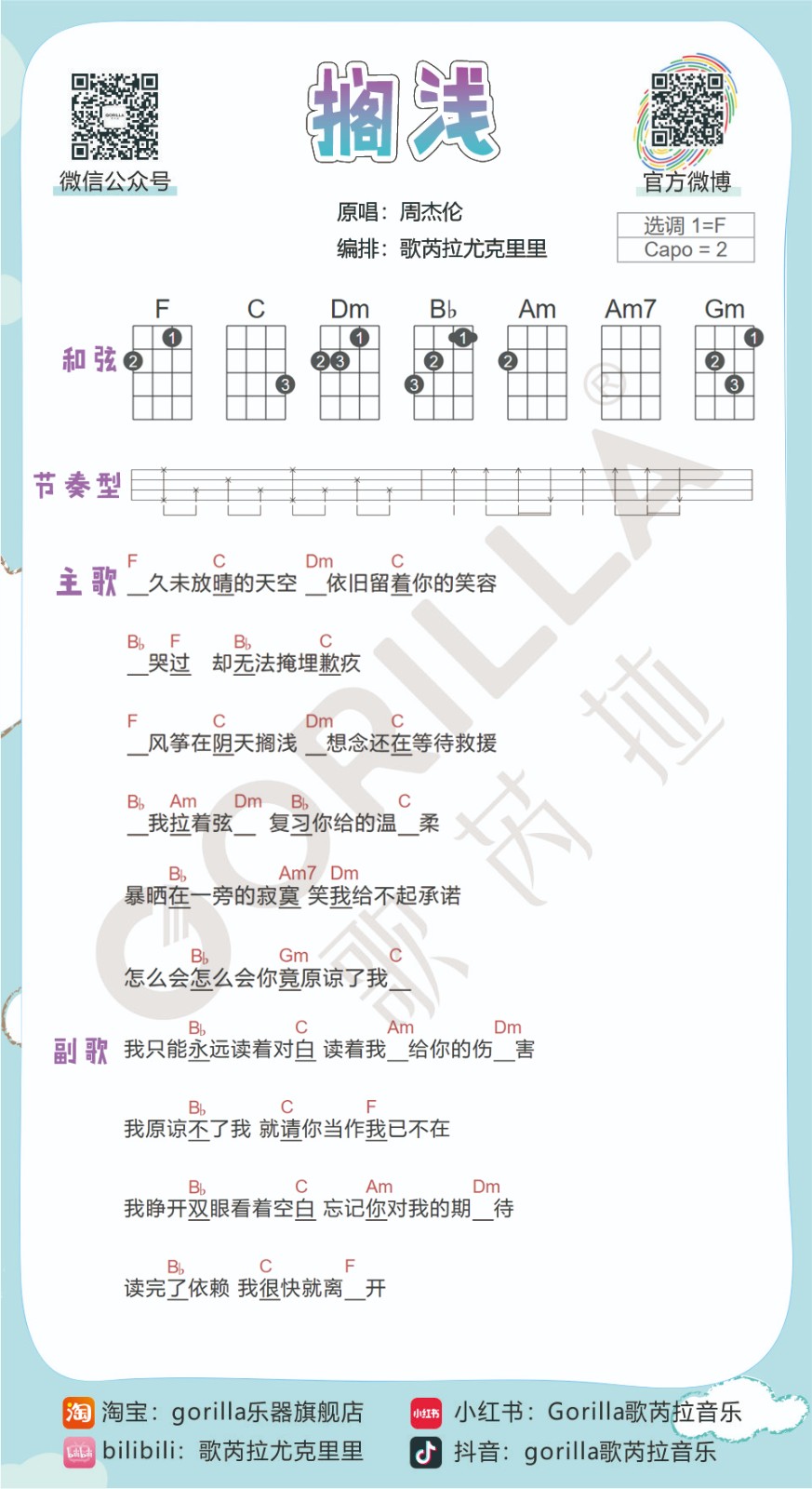 周杰伦《搁浅》尤克里里谱,共有1张高清图谱,免翻页排版设计。...