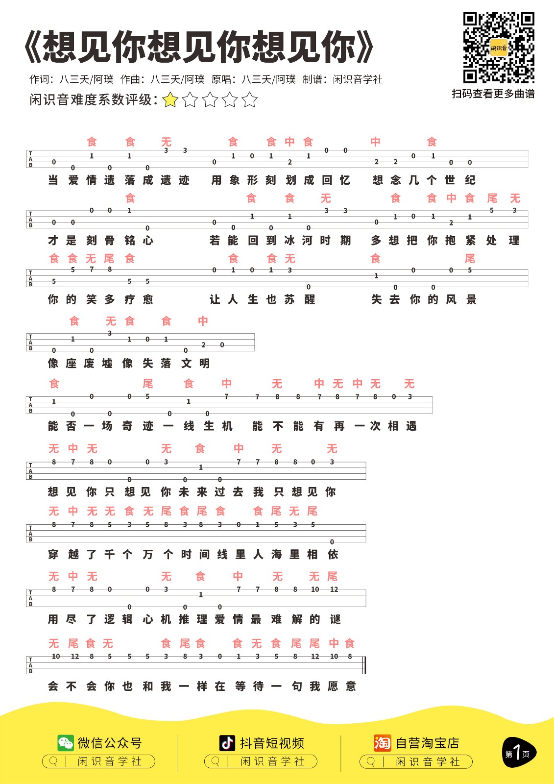 《想见你想见你想见你》单音版尤克里里指弹谱...