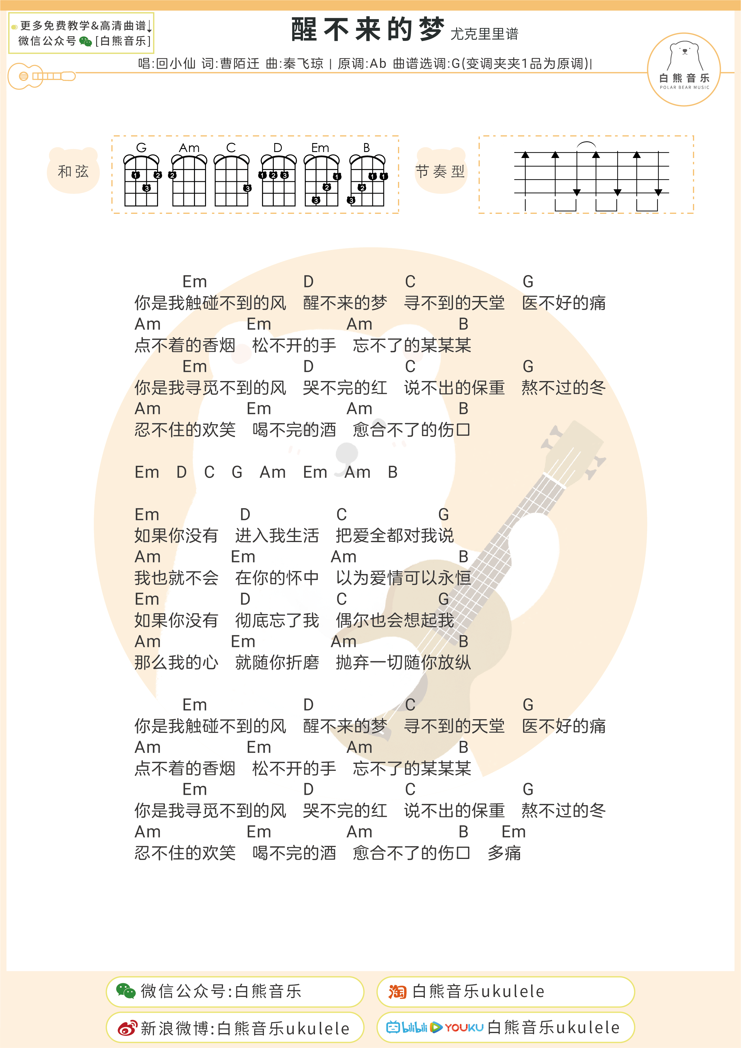 尤克里里回小仙《醒不来的梦》尤克里里谱