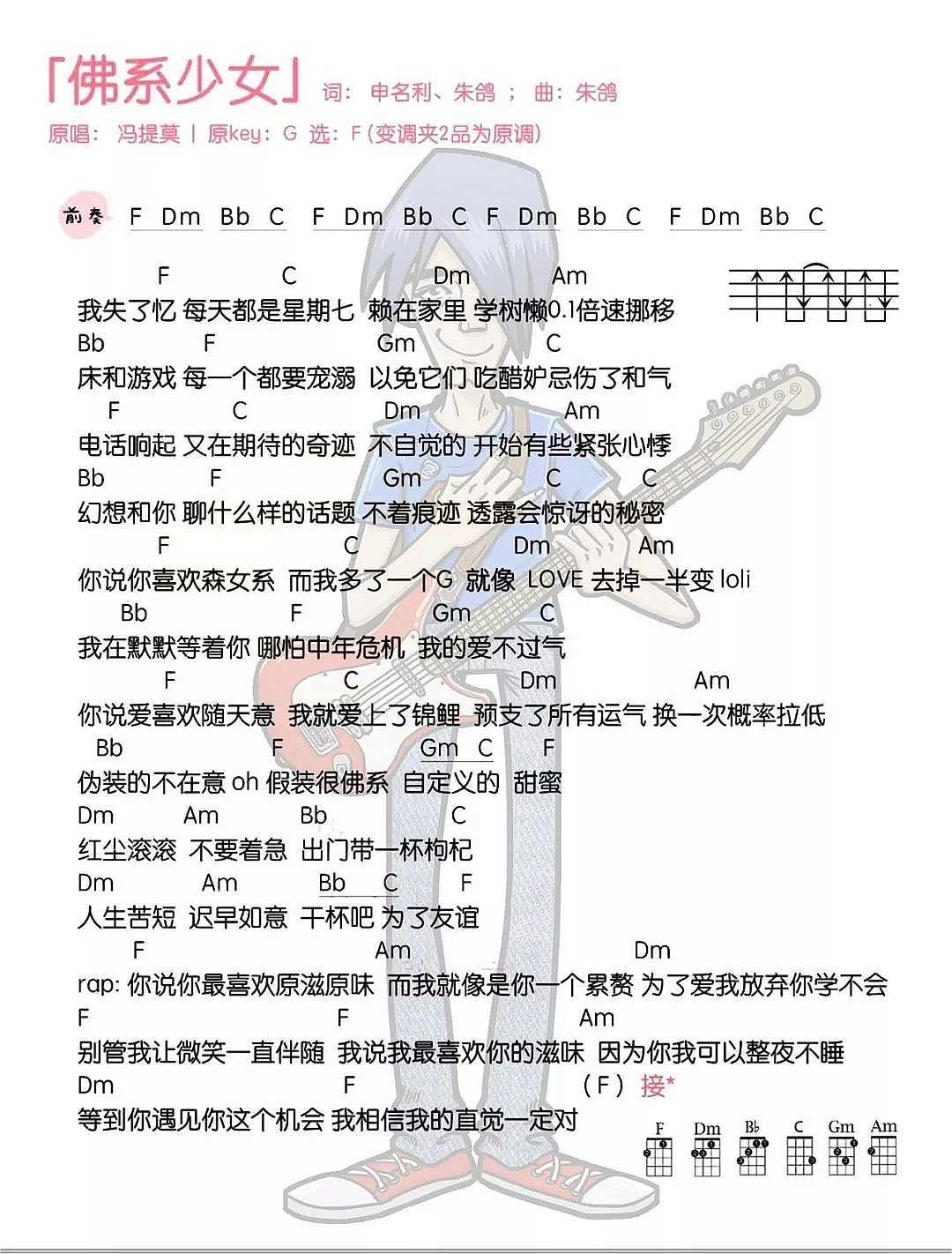 《佛系少女尤克里里谱-冯提莫随性自然的态度》尤克里里谱,共有1张高清图谱,免翻页排版设计。...