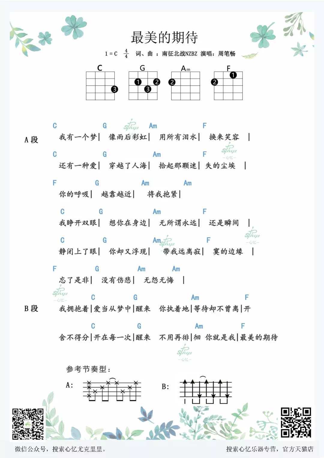 《最美的期待尤克里里谱-周笔畅阳光般的温暖与力量》尤克里里谱,共有1张高清图谱,免翻页排版设计。...
