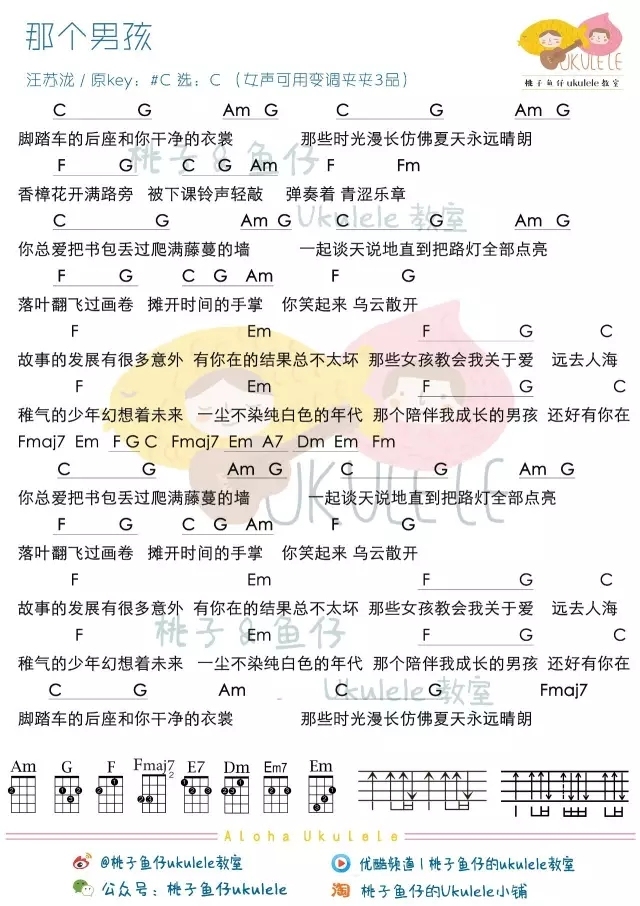 《那个男孩尤克里里谱-年少的爱恋与欢喜、青春与真诚的影子》尤克里里谱,共有1张高清图谱,免翻页排版设计。...