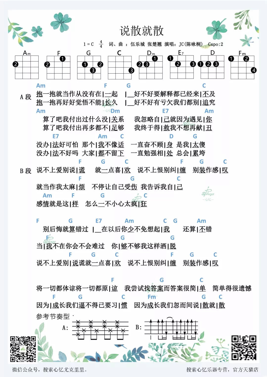 《说散就散尤克里里谱》尤克里里谱,共有1张高清图谱,免翻页排版设计。...