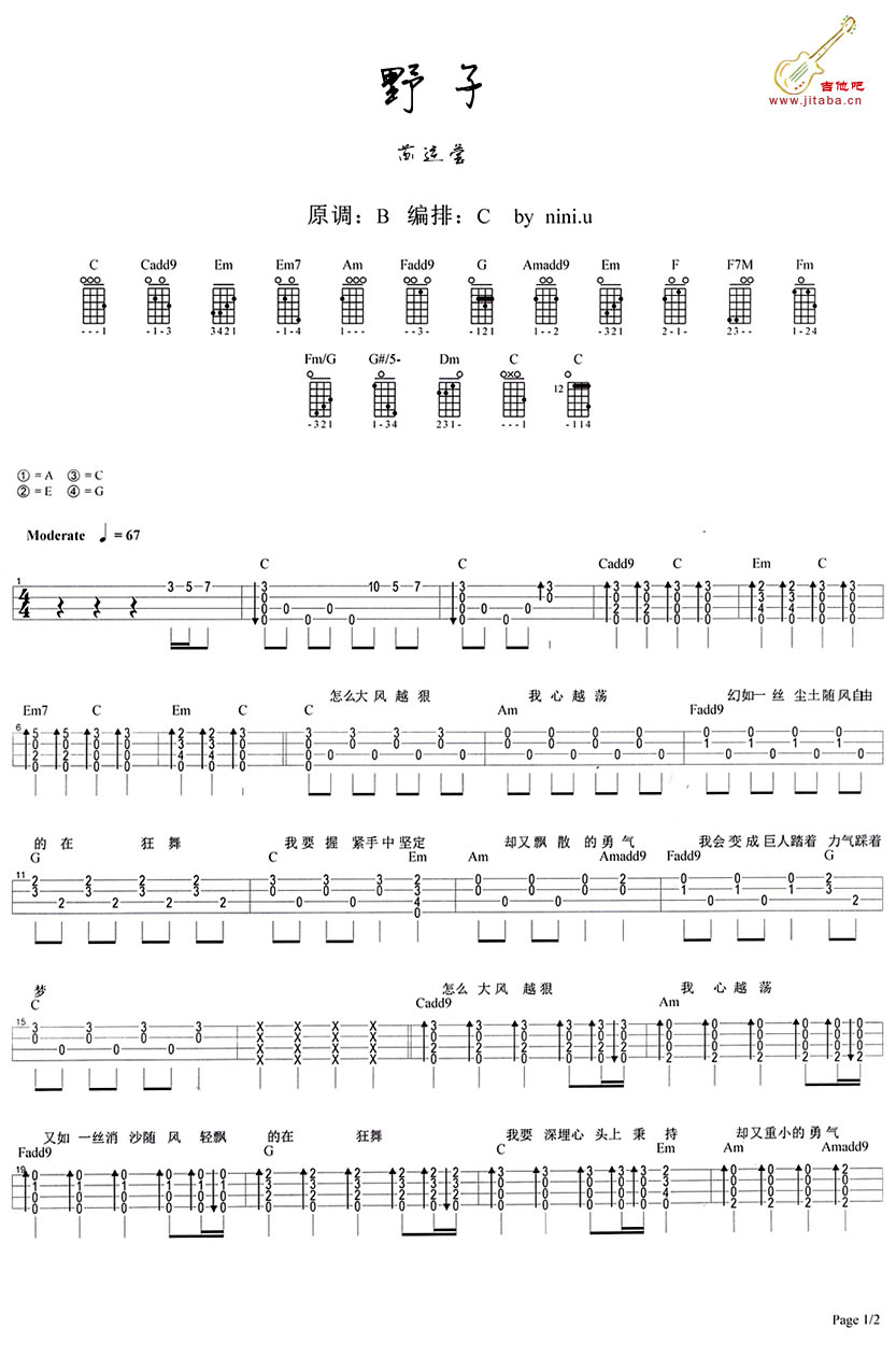 尤克里里野子_尤克里里谱_苏运莹_野子尤克里里谱