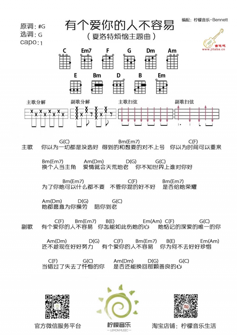 尤克里里旧情人我是时间的新欢_尤克里里谱_尧十三_弹唱谱