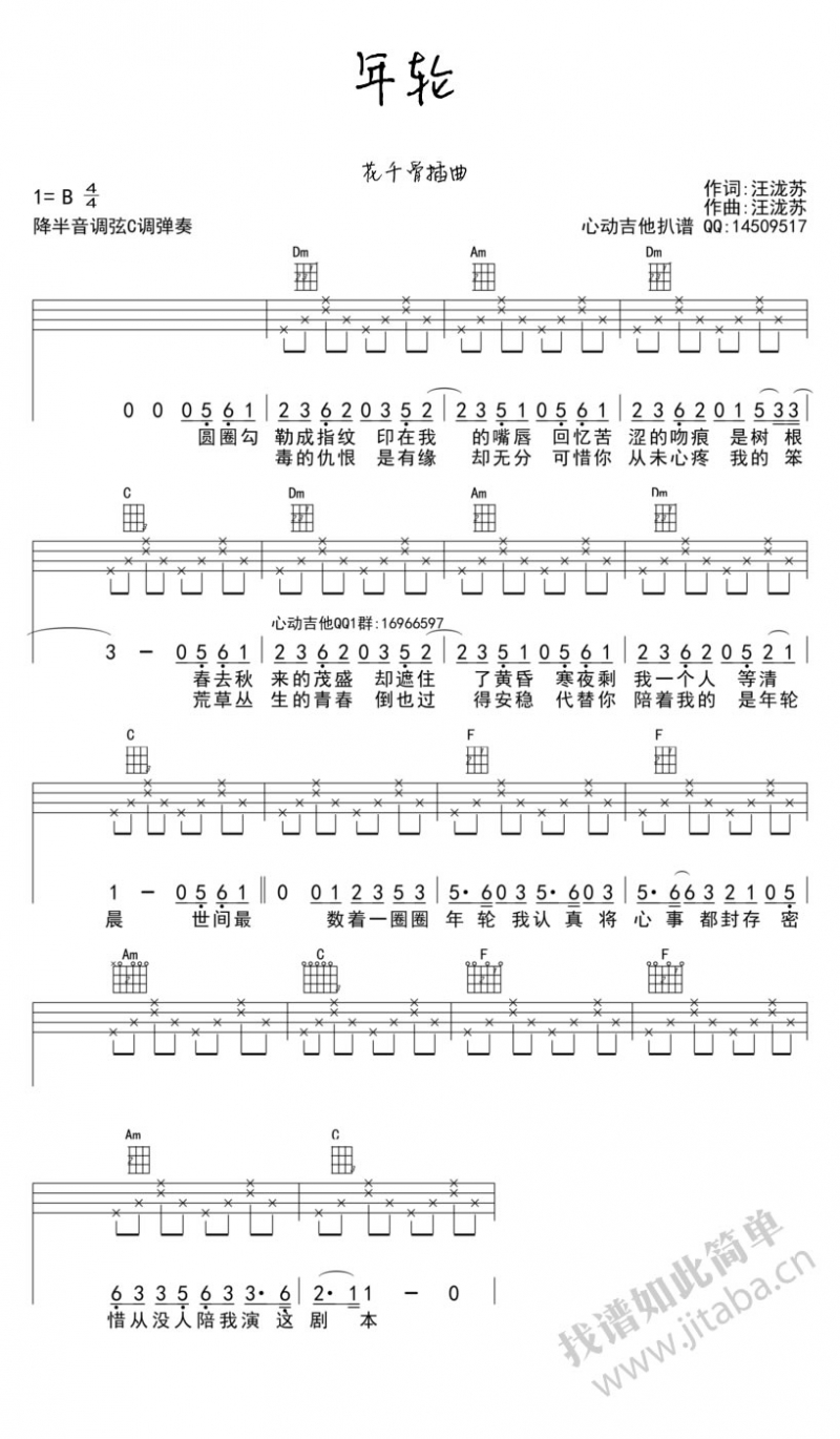 《年轮_尤克里里谱_汪苏泷【花千骨】》尤克里里谱,共有1张高清图谱,免翻页排版设计。...