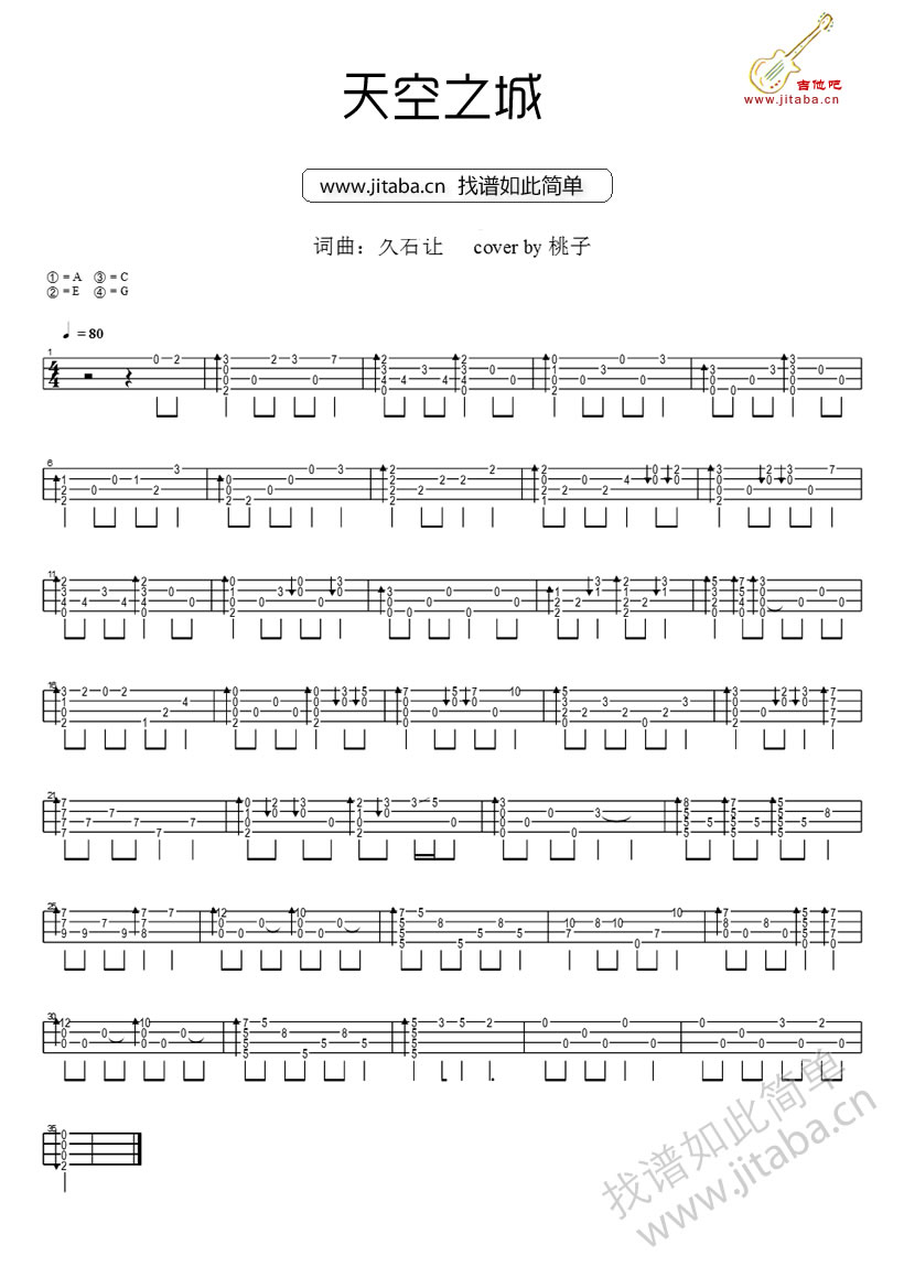 《天空之城_尤克里里谱【简单版】》尤克里里谱,共有1张高清图谱,免翻页排版设计。...