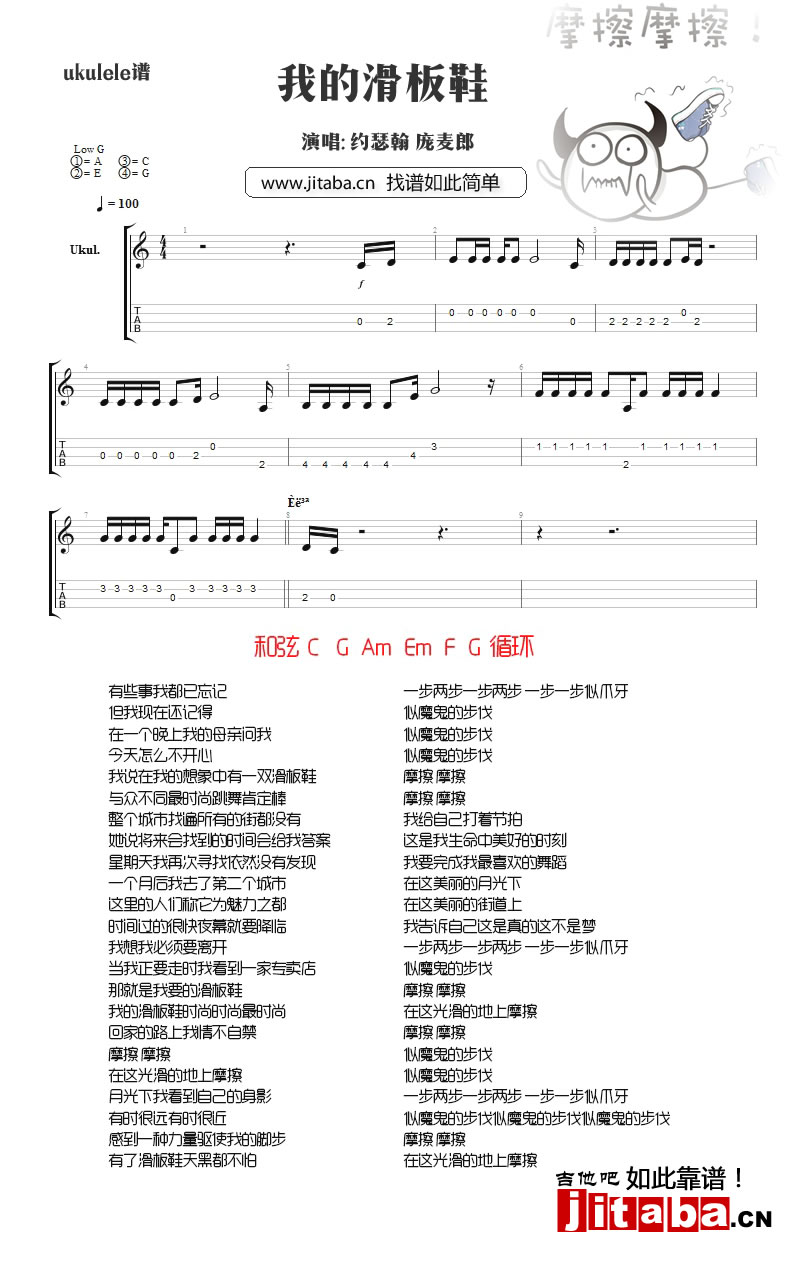 尤克里里我的滑板鞋_尤克里里谱_约瑟翰庞麦郎