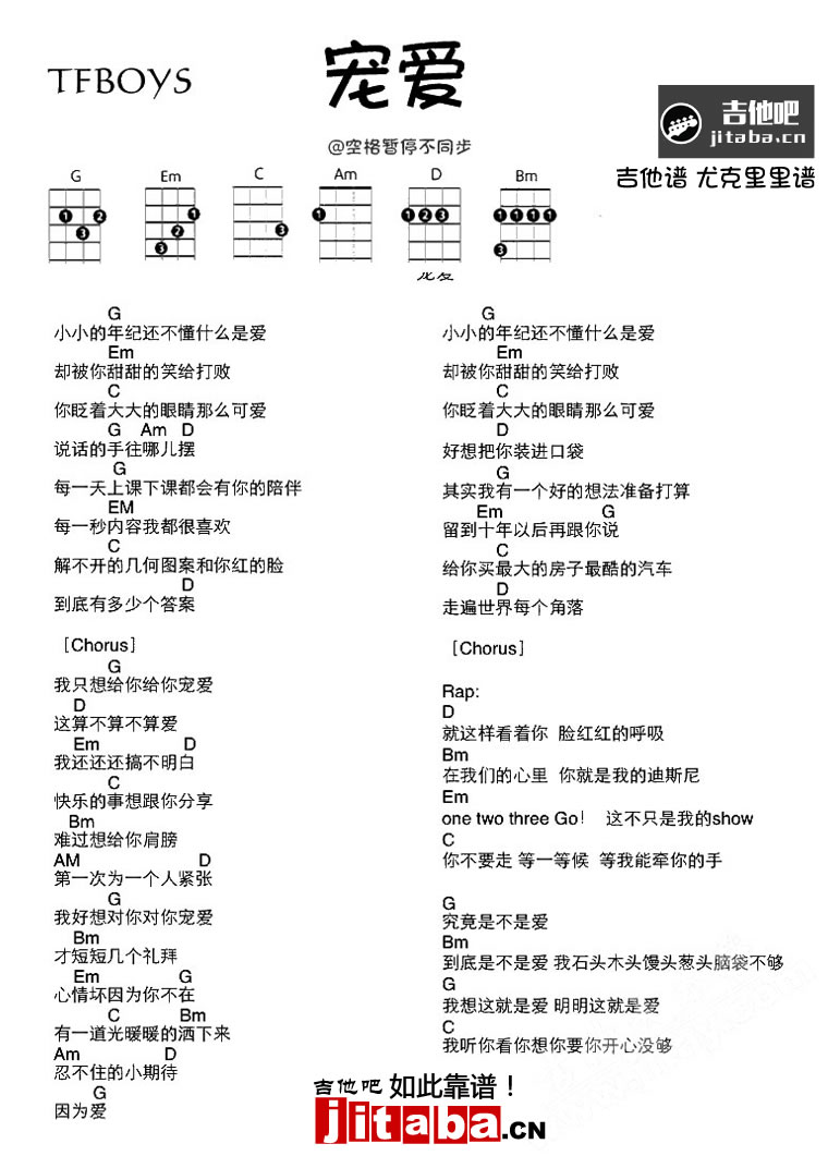 TFBOYS《宠爱_尤克里里谱_TFBOYS》尤克里里谱,共有1张高清图谱,免翻页排版设计。...