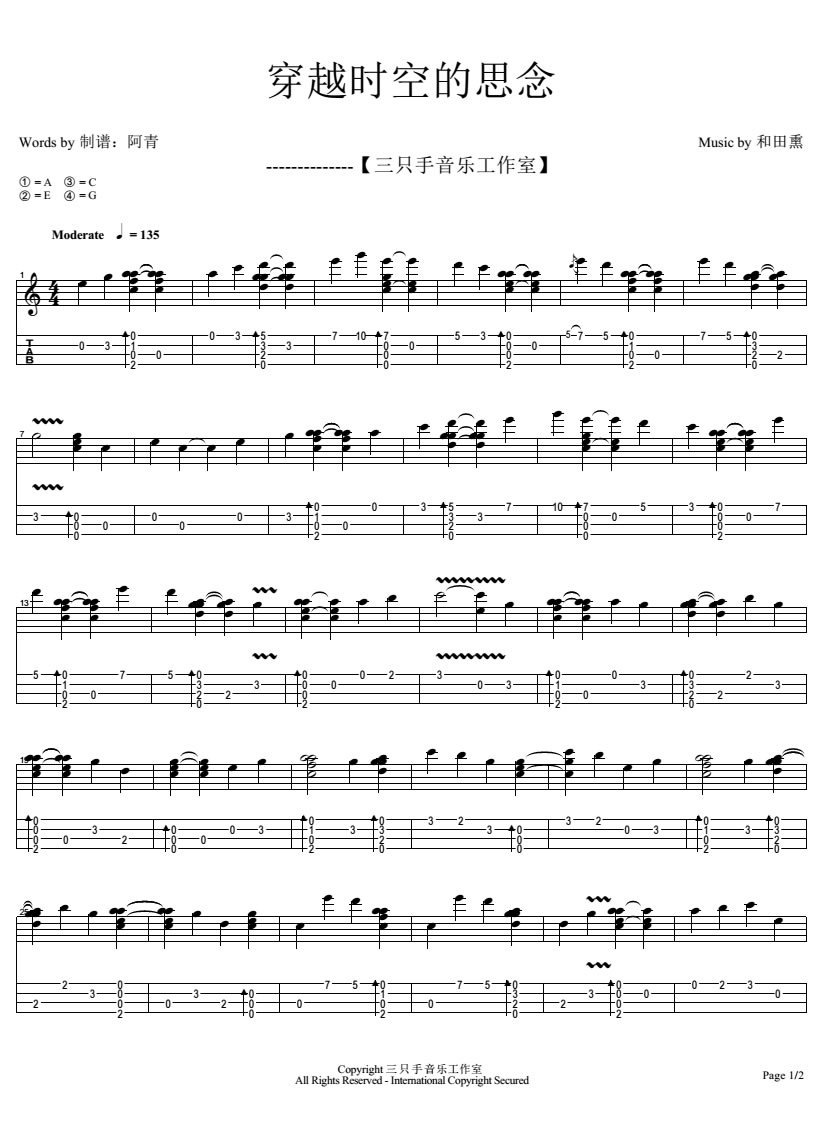 吉他谱和弦运用和谐,旋律旋律美妙,简单,叫人陶醉注意和弦过度和曲子的感情意境融合...