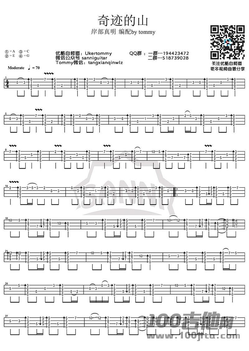 尤克里里奇迹的山尤克里里谱指弹谱_岸部真明_独奏谱