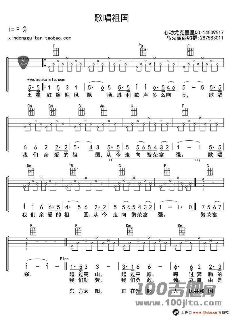 《歌唱祖国尤克里里谱_F调》尤克里里谱,共有2张高清图谱,免翻页排版设计。...