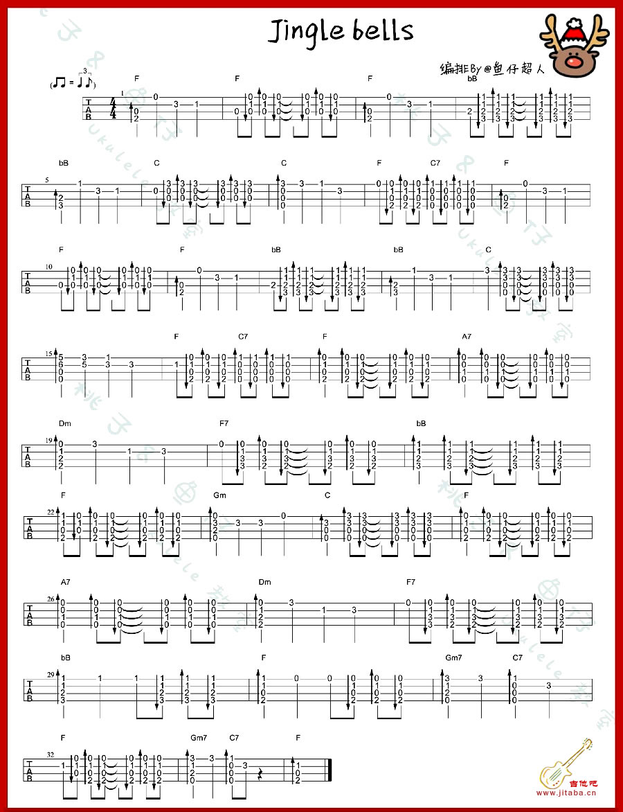 尤克里里Jingle bells ukulele指弹谱_铃儿响叮当尤克里里谱