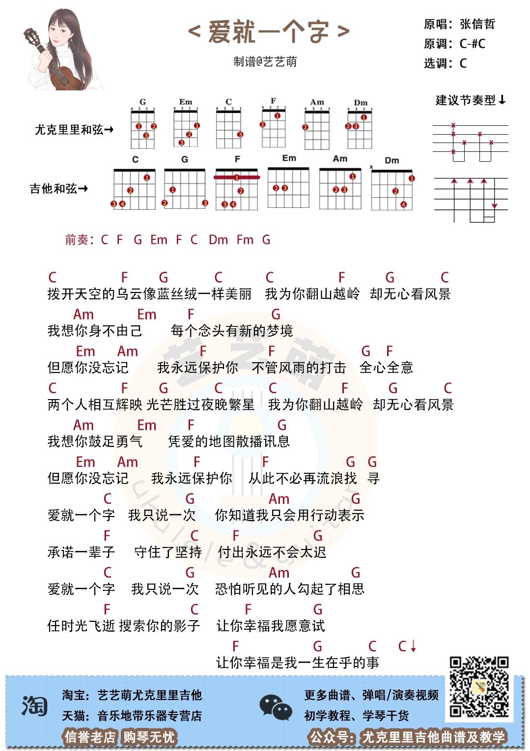 尤克里里张信哲《爱就一个字》尤克里里谱_C调ukulele谱
