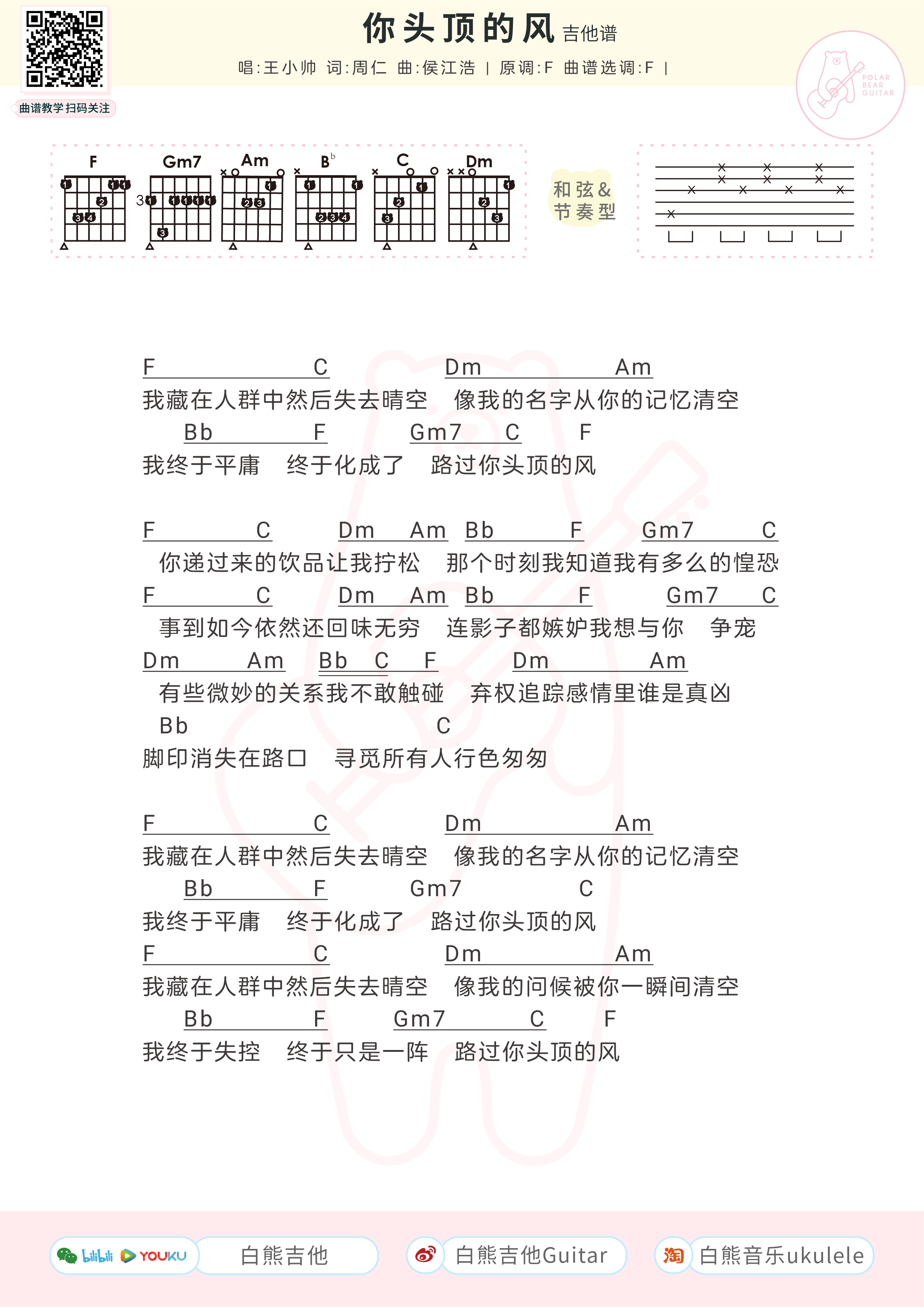 《你头顶的风》尤克里里谱_F调原调ukulele谱_吉他和弦谱...