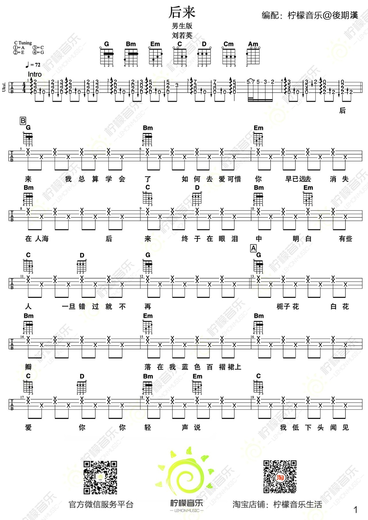 尤克里里《后来》刘若英尤克里里弹唱-男生版