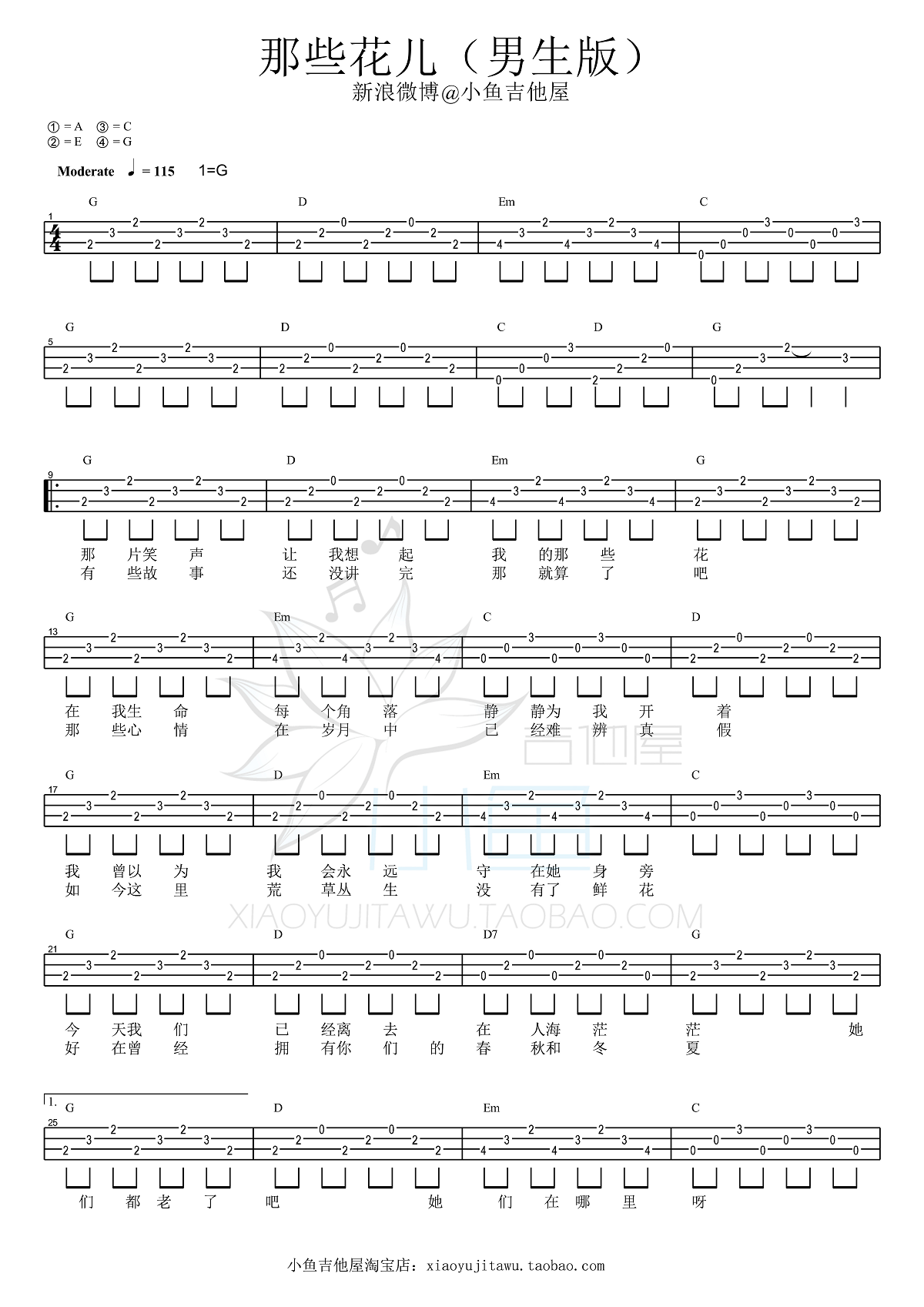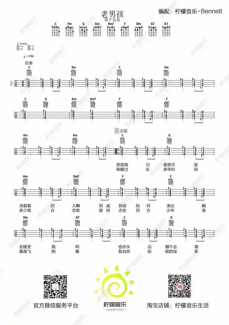 尤克里里《老男孩》尤克里里谱
