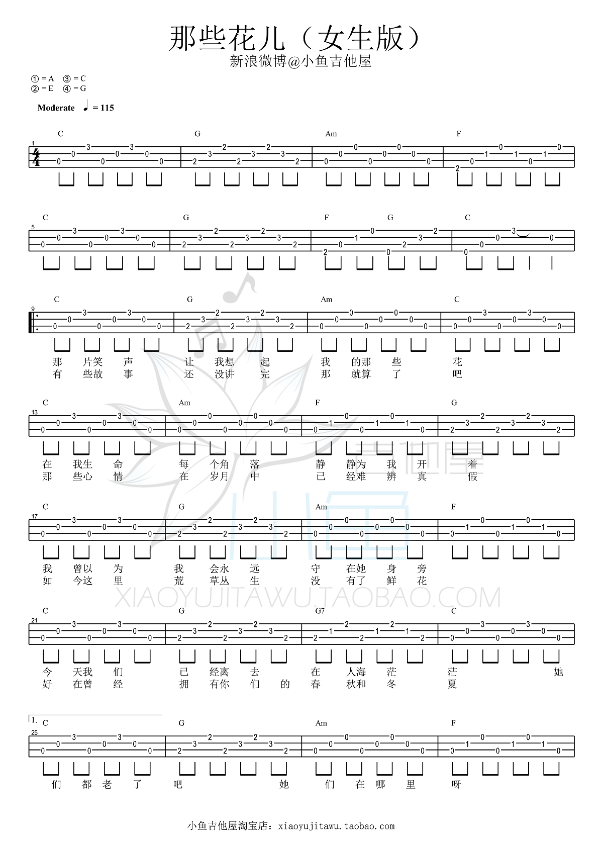 [BGM蚂蚁呀嘿]郭美美《不怕不怕》尤克里里弹唱谱白熊音乐...