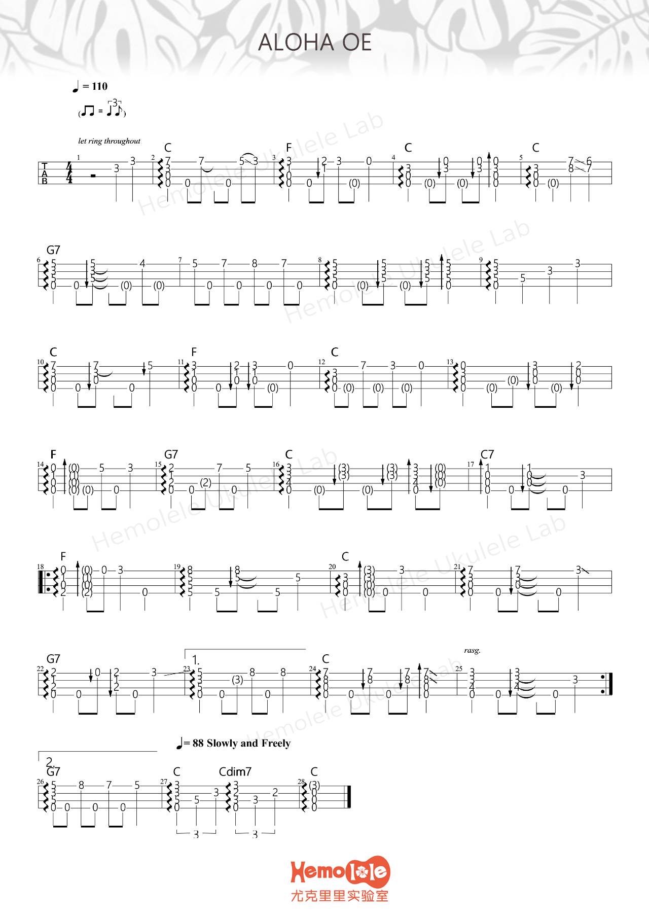 尤克里里《Aloha Oe》尤克里里谱
