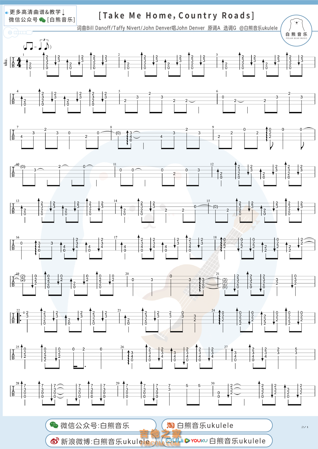 JohnDenver《TakeMeHome,CountryRoads》尤克里里指弹谱...