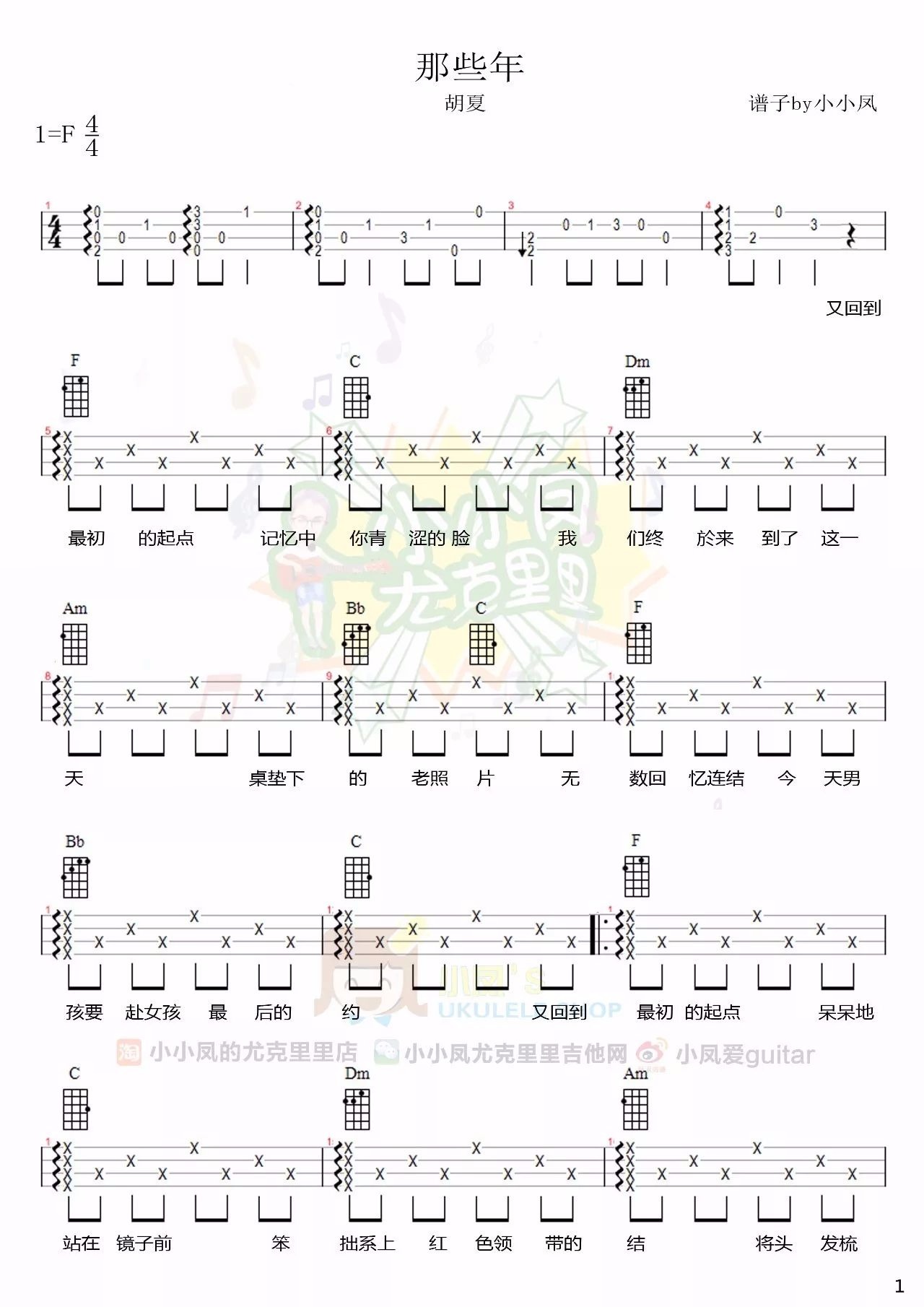 尤克里里《那些年》尤克里里谱_胡夏