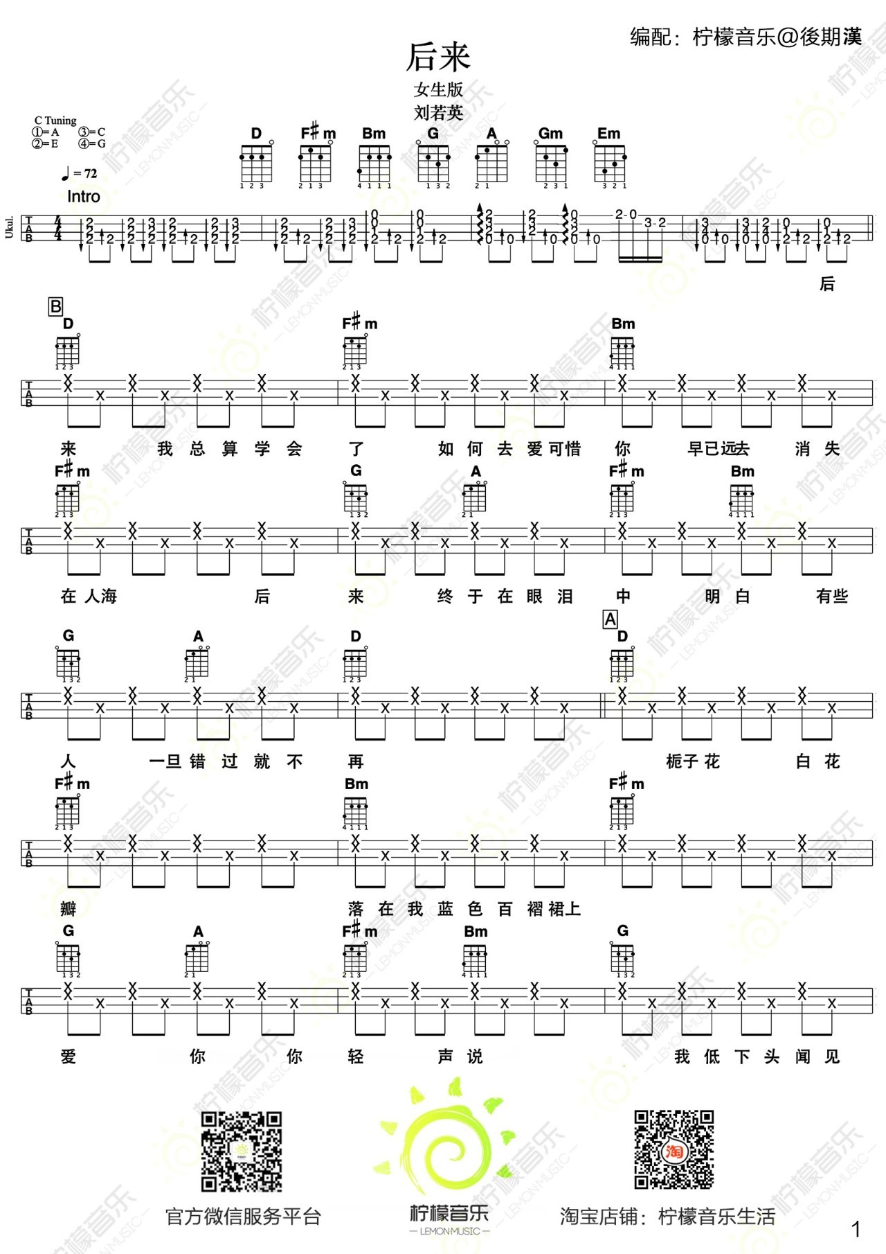 尤克里里《后来》刘若英尤克里里-女生版本