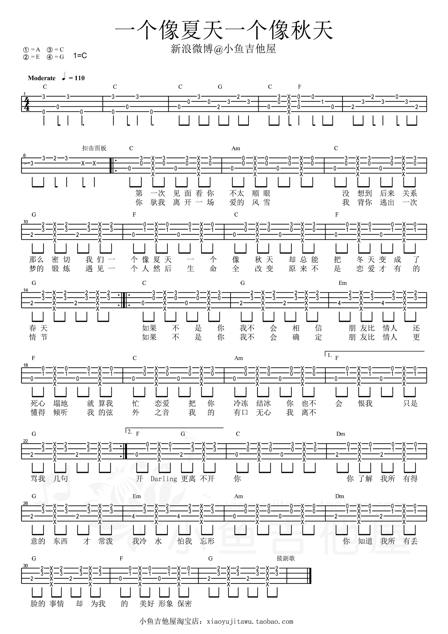 《一个像夏天一个像秋天》尤克里里...