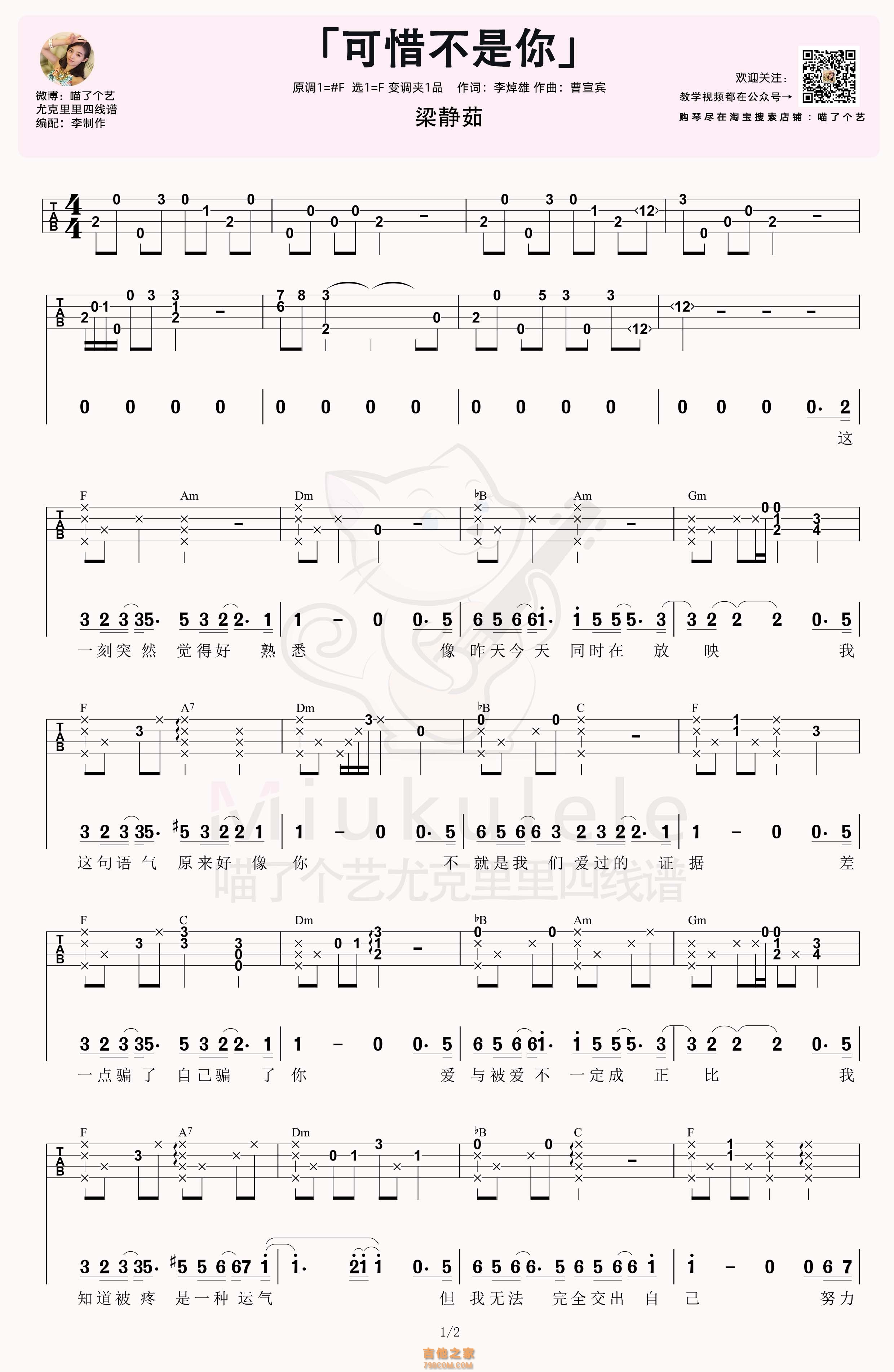 尤克里里梁静茹《可惜不是你》尤克里里