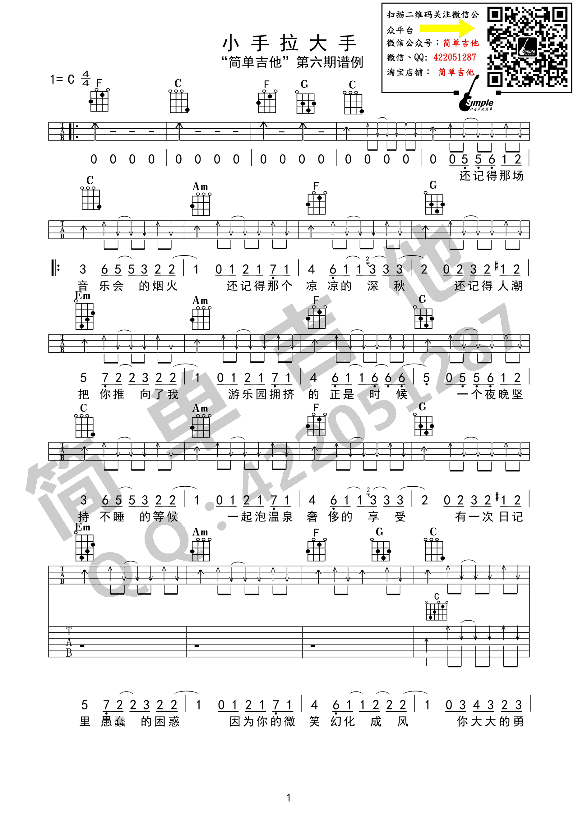 尤克里里梁静茹《小手拉大手》尤克里里谱+吉他谱-合奏谱