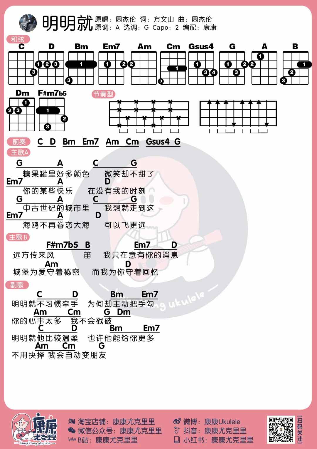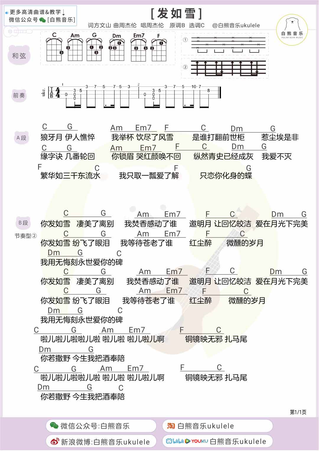 周杰伦《发如雪》尤克里里谱_弹唱+指弹谱...