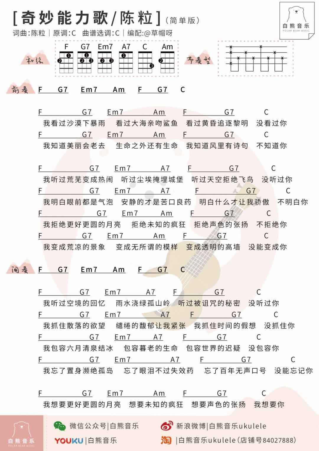 《奇妙能力歌》Ukulele弹唱谱+指弹谱...
