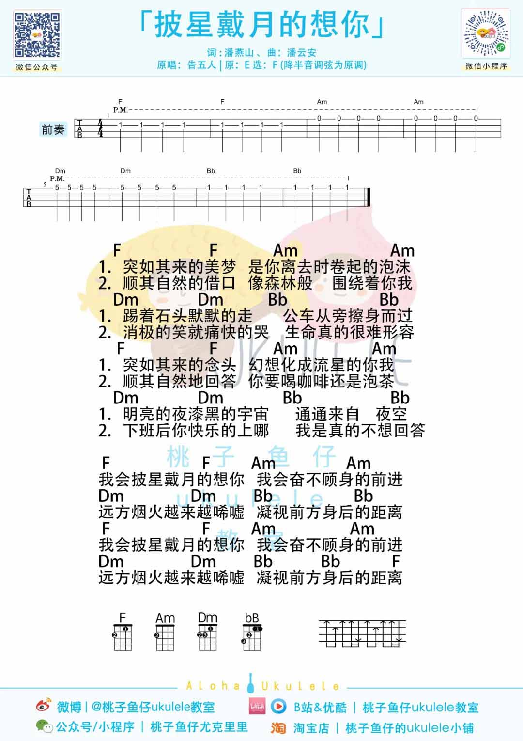 尤克里里告五人《披星戴月的想你》尤克里里谱