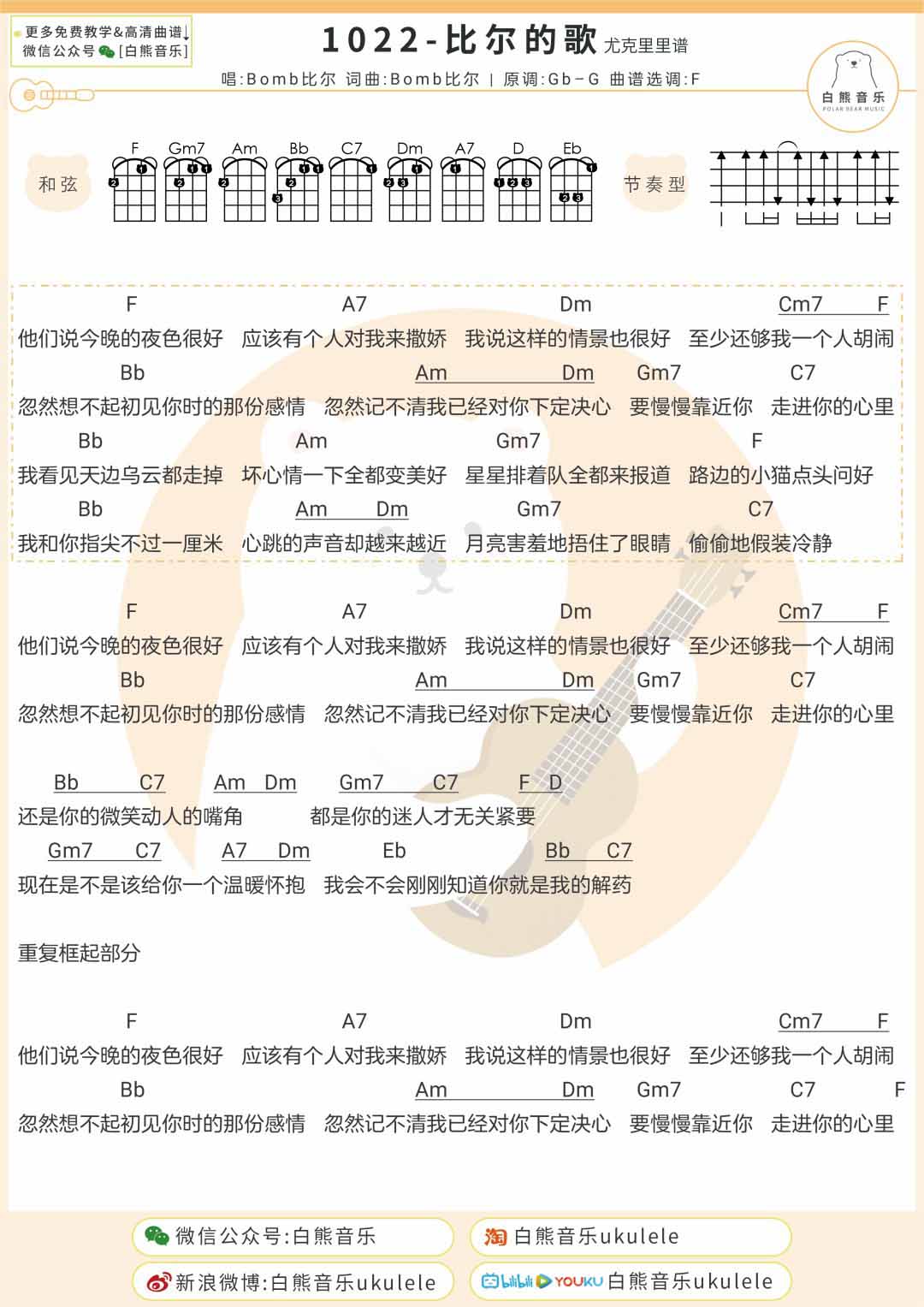 〈1022-比尔的歌〉Bomb比尔/尤克里里谱...