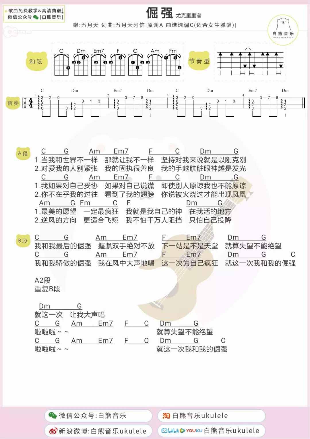 尤克里里五月天《倔强》尤克里里谱_指弹+弹唱谱