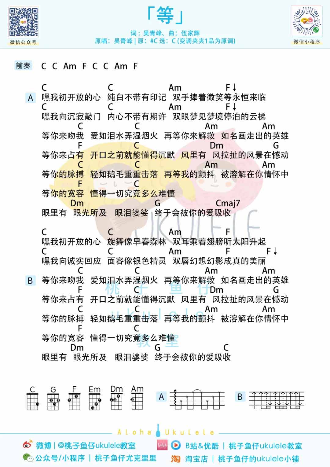 尤克里里吴青峰《等》尤克里里谱_弹唱