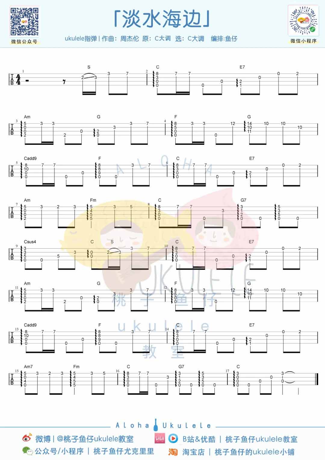 尤克里里周杰伦|不能说的秘密插曲《淡水海边》尤克里里谱