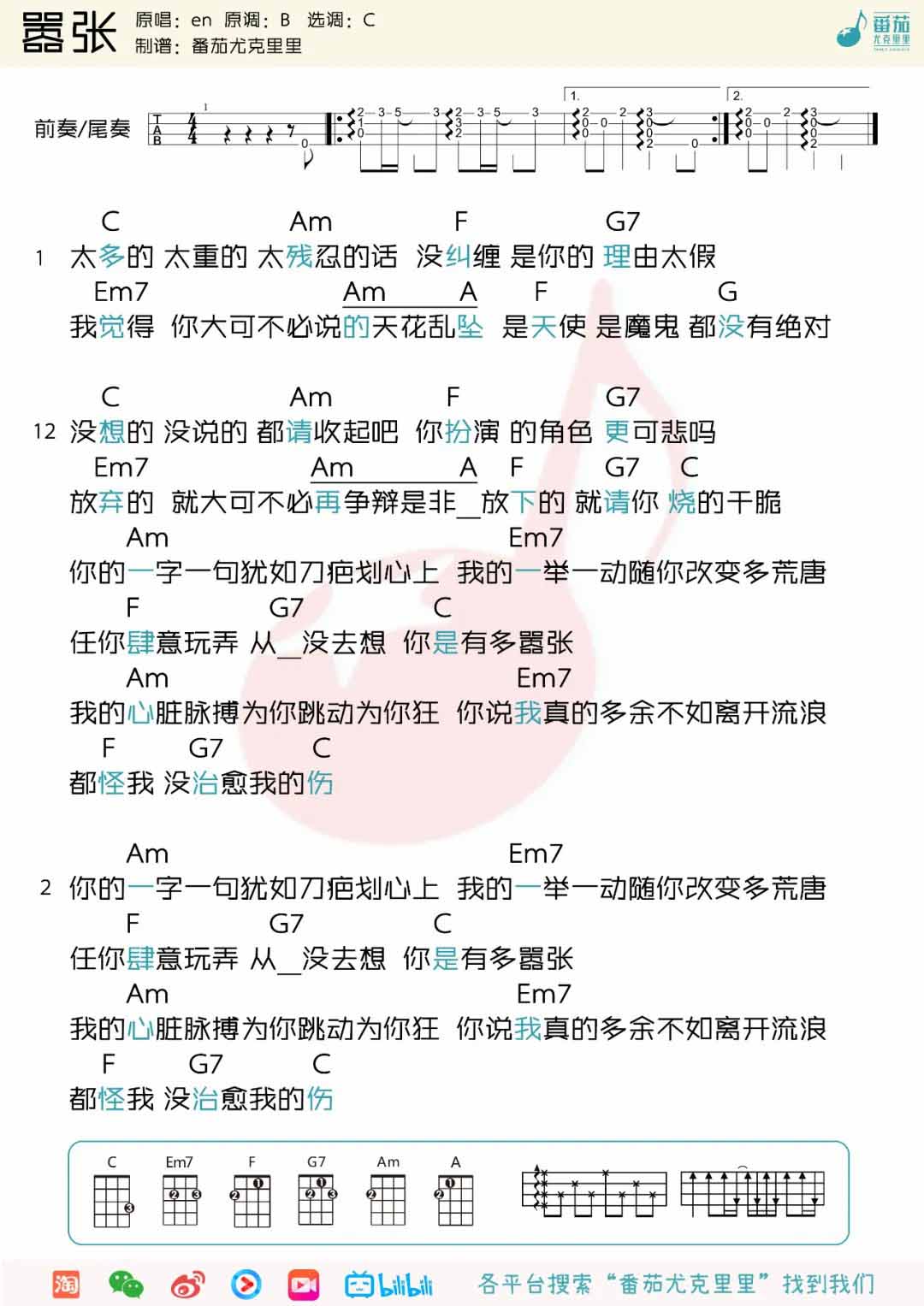 尤克里里en《嚣张》尤克里里谱_弹唱