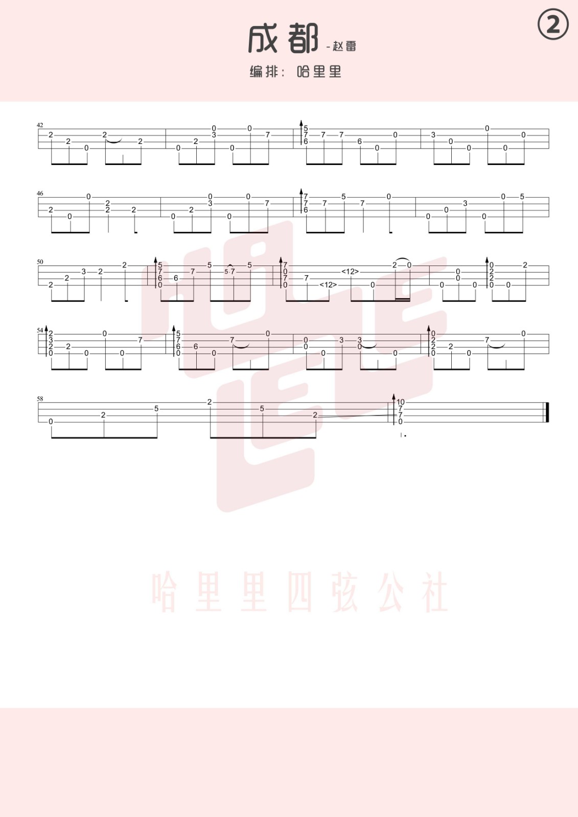 赵雷《成都》尤克里里谱指弹谱...