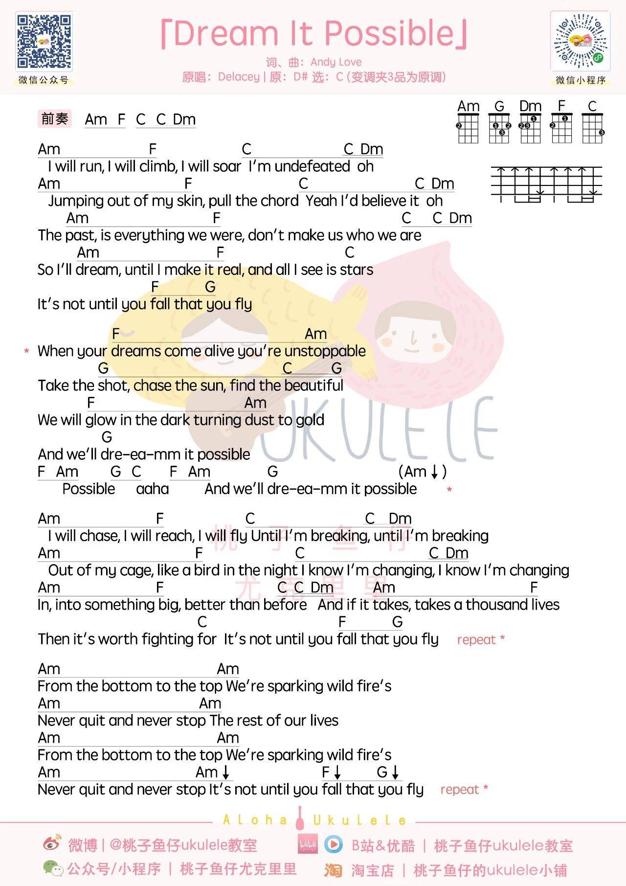 DreamItPossible我的梦尤克里里谱_张靓颖...