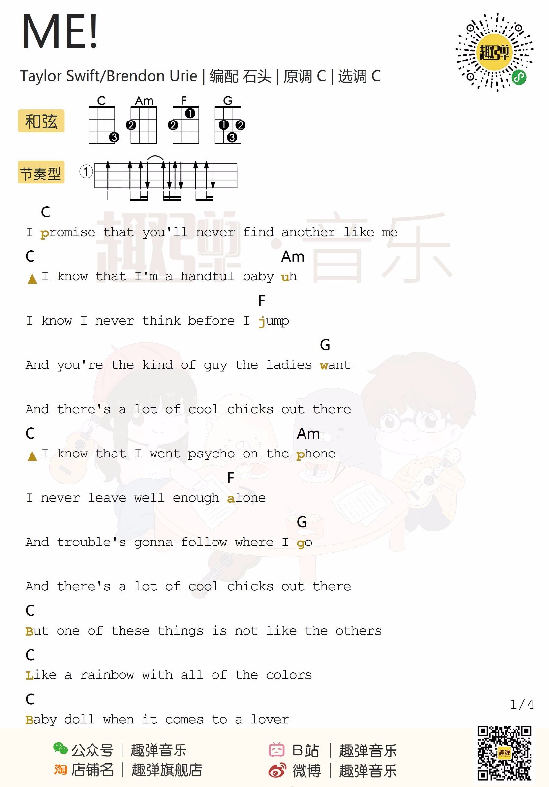 尤克里里Taylor Swift《ME!》尤克里里弹唱谱