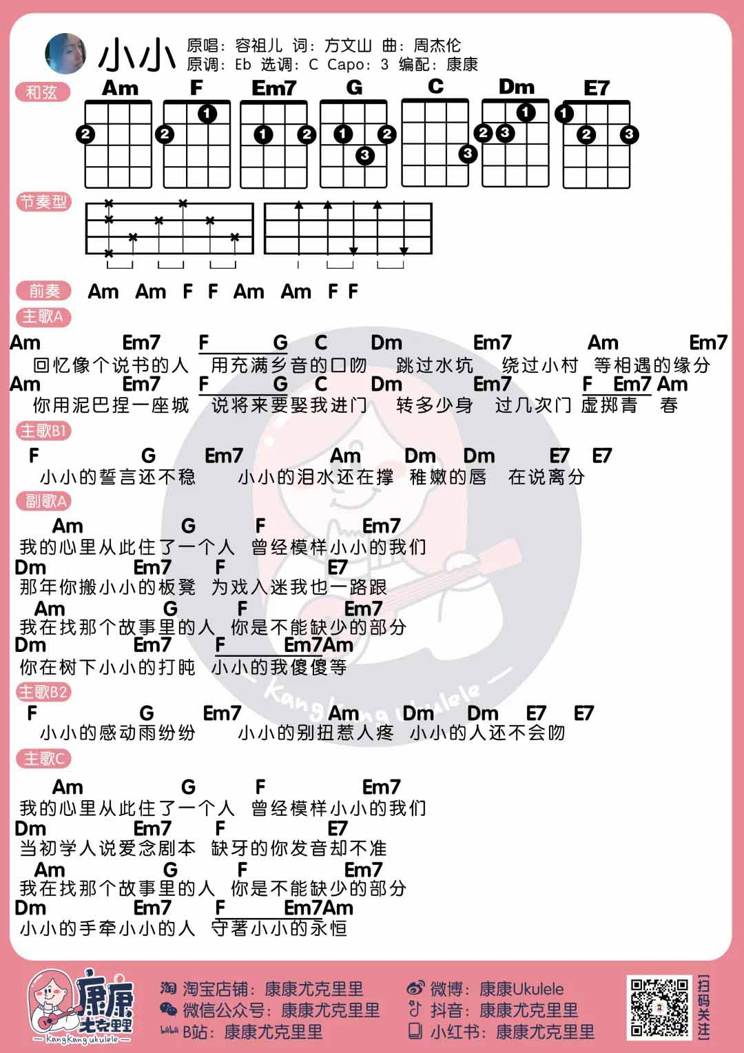 容祖儿《小小》尤克里里谱_弹唱...