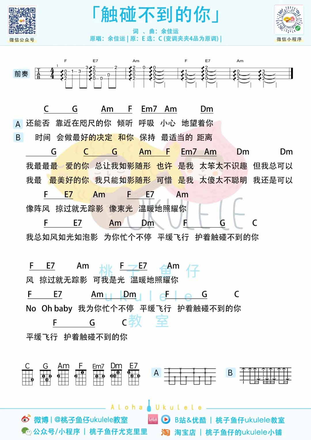 余佳运《触碰不到的你》尤克里里谱_弹唱谱...
