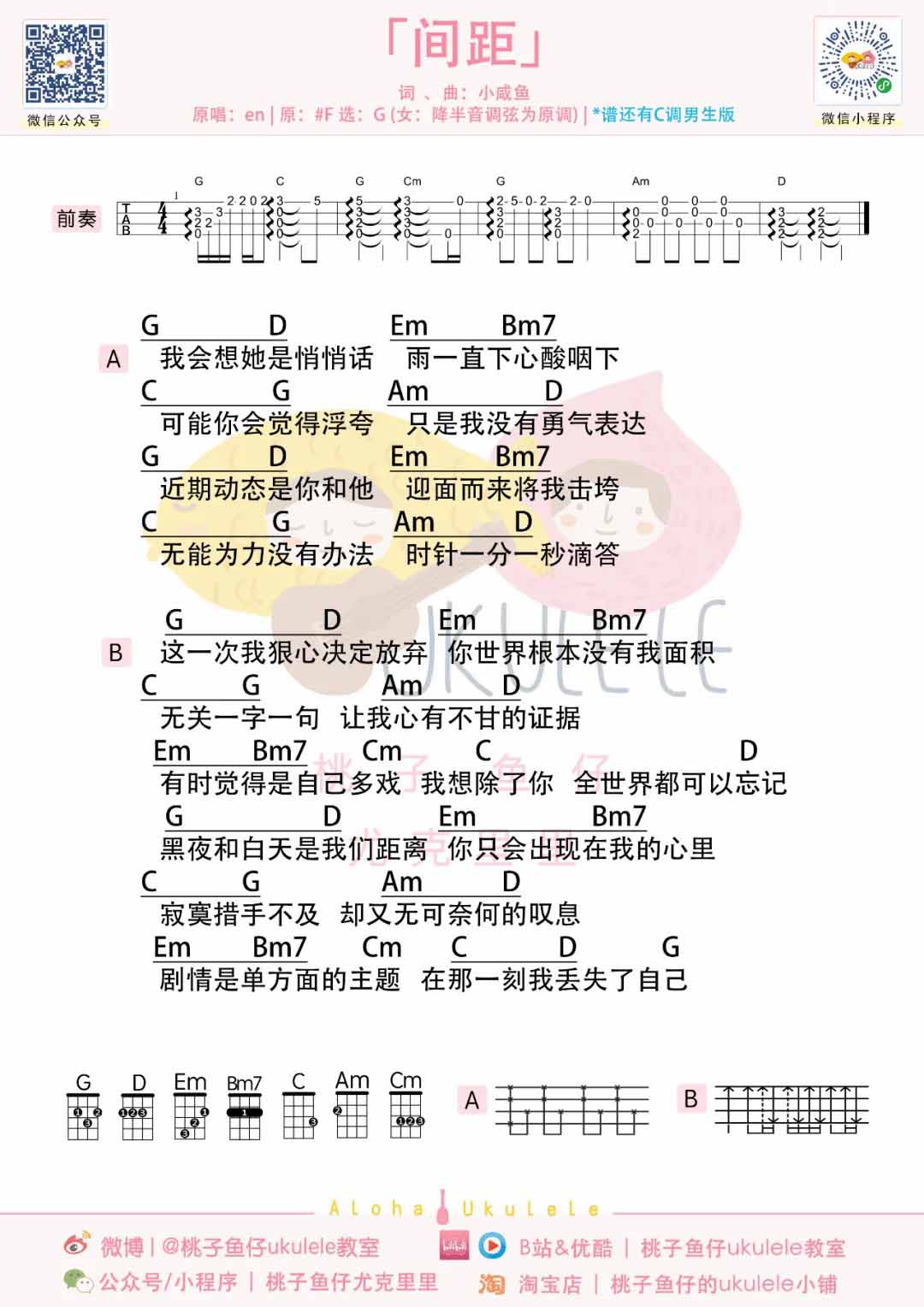 en《间距》尤克里里谱_弹唱/C调和G调...