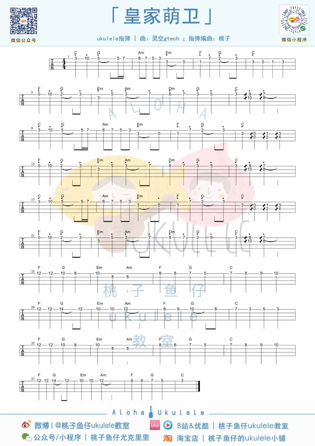 灵空GTech《皇家萌卫》尤克里里指弹谱...