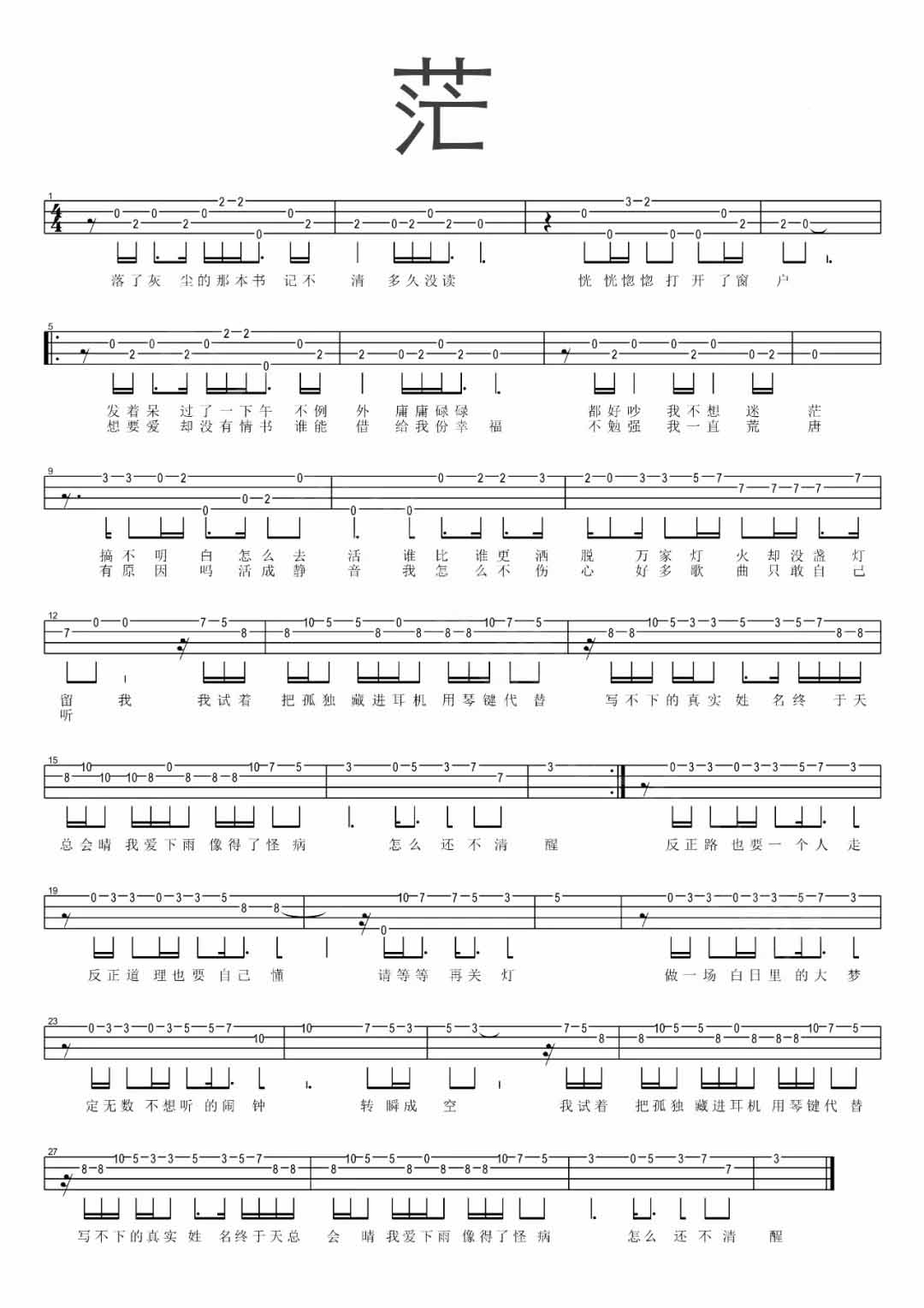 李润祺《茫》尤克里里指弹谱...