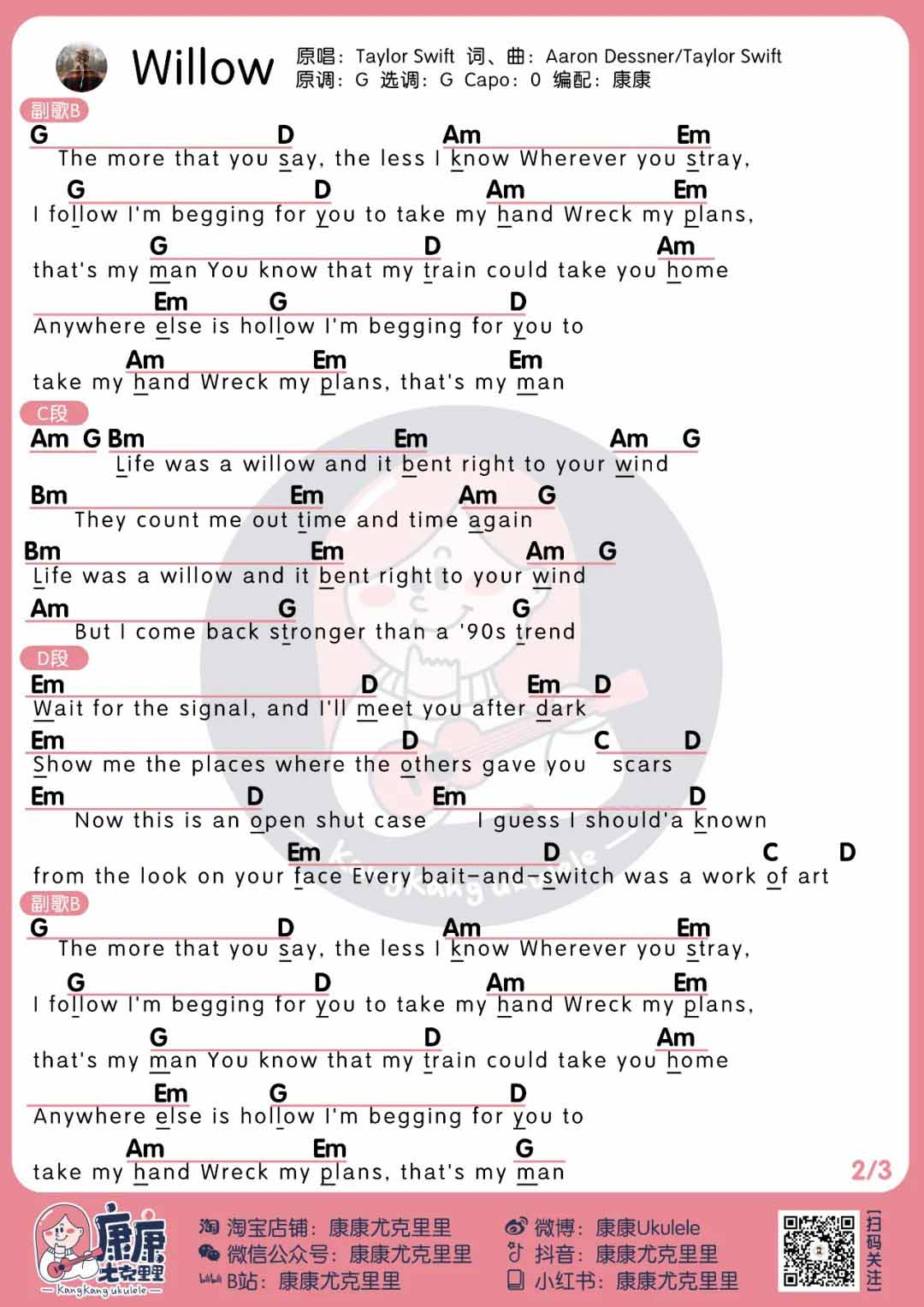 TaylorSwift《willow》尤克里里谱_弹唱谱...