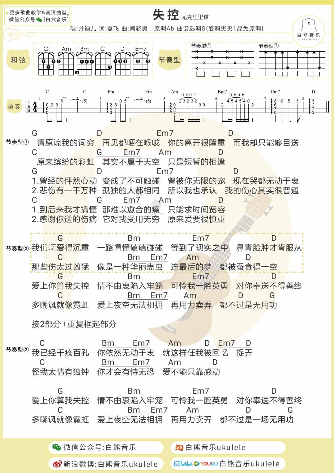 井迪儿《失控》尤克里里谱_弹唱...